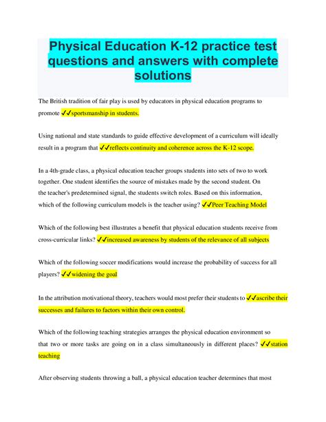 Read Online Physical Education Test Questions Answers Kindle Editon